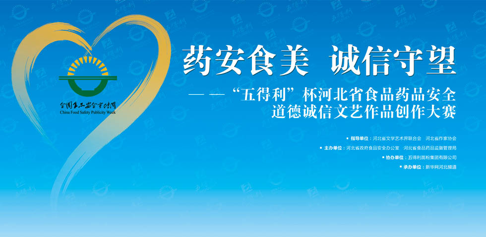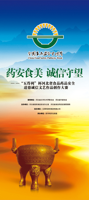 为深入践行社会主义核心价值观,建设诚信文化,构筑保障食品药品安全的道德高地,推进食品药品安全社会共治体系建设,营造全社会关心、支持、参与、监督食品药品安全的浓厚社会氛围,河北省政府食品安全办公室、河北省食品药品监督管理局定于2014年6月26日启动“药安食美诚信守望”——“五得利杯”河北省食品药品安全道德诚信文艺作品创作大赛活动,...