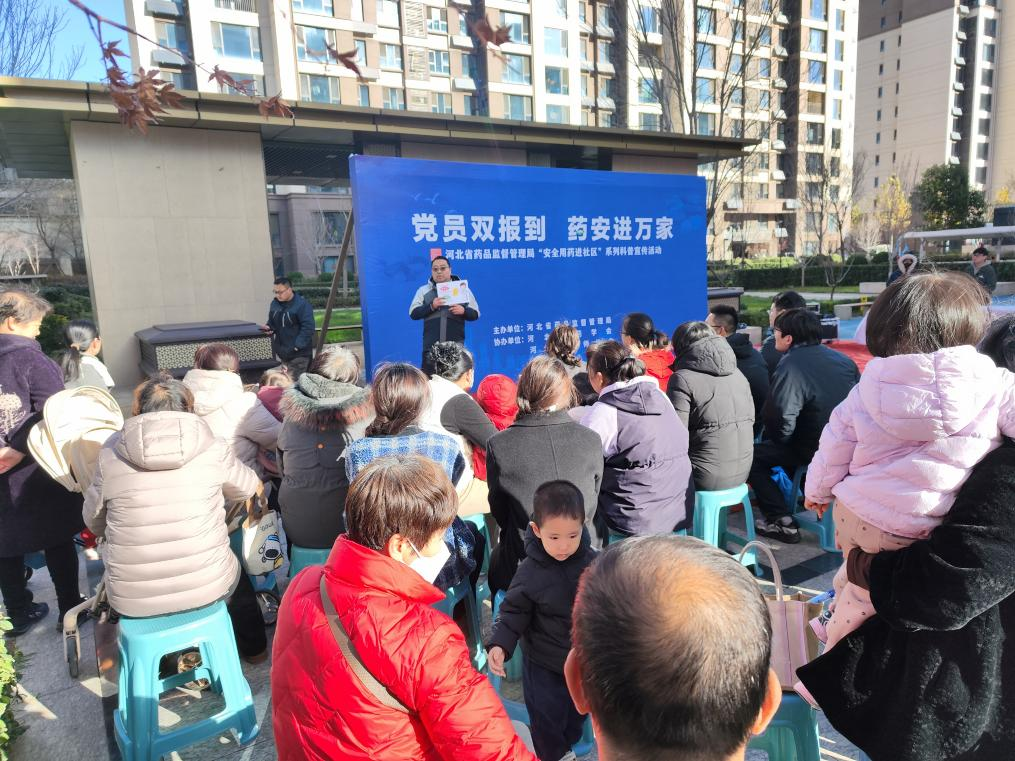为深入贯彻落实党的群众路线,切实把“我为群众办实事”实践活动走深走实,推动党员“双报到”工作与民生服务深度融合,11月27日,河北省药品监督管理局“党员双报到 药安进万家”科普宣传活动走进鹿泉区力高岳麓兰庭小区,面向群众普及药品安全知识。本次活动由河北省药品监督管理局主办,省药品医疗器械检验研究院具体承办。活动以普及药品监管法律法规、传播安全用药知识为核心,通过“用药安全知识宣讲+案例介绍+便民服务”的多元形式,将专业药品安全知识送到群众家门口,切实助力构建药品安全社会共治新格局。