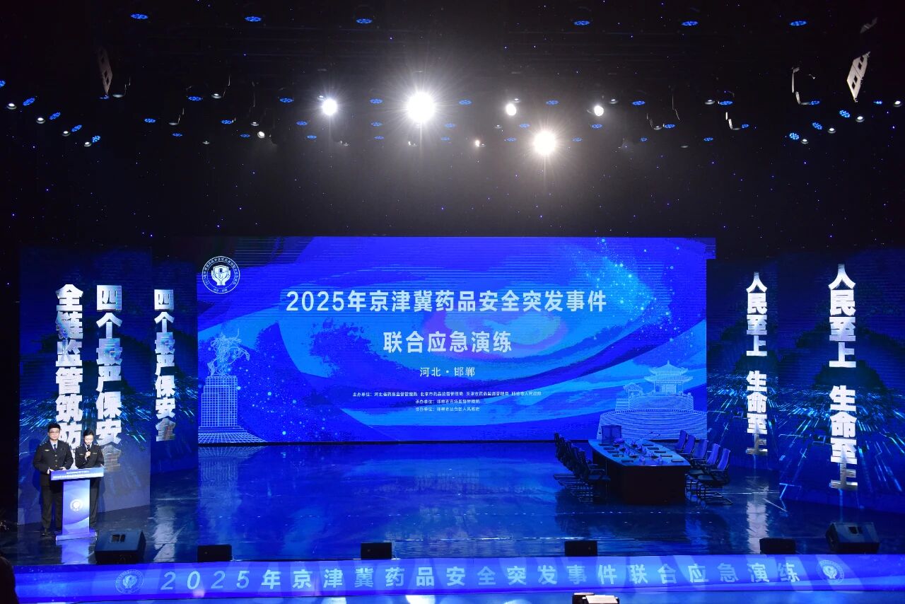 为进一步提高京津冀三地药品监管部门应急管理能力水平,健全完善药品安全突发事件应急体系,锻炼提高药品安全突发事件应对处置能力,11月28日上午,“2025年京津冀药品安全突发事件联合应急演练”在邯郸市成功举办。此次演练由国家药监局高研院(国家药监局安全应急演练中心)指导,河北省药品监督管理局、北京市药品监督管理局、天津市药品监督管理局和邯郸市人民政府联合主办,邯郸市市场监督管理局承办,邯郸市丛台区人民政府协办。