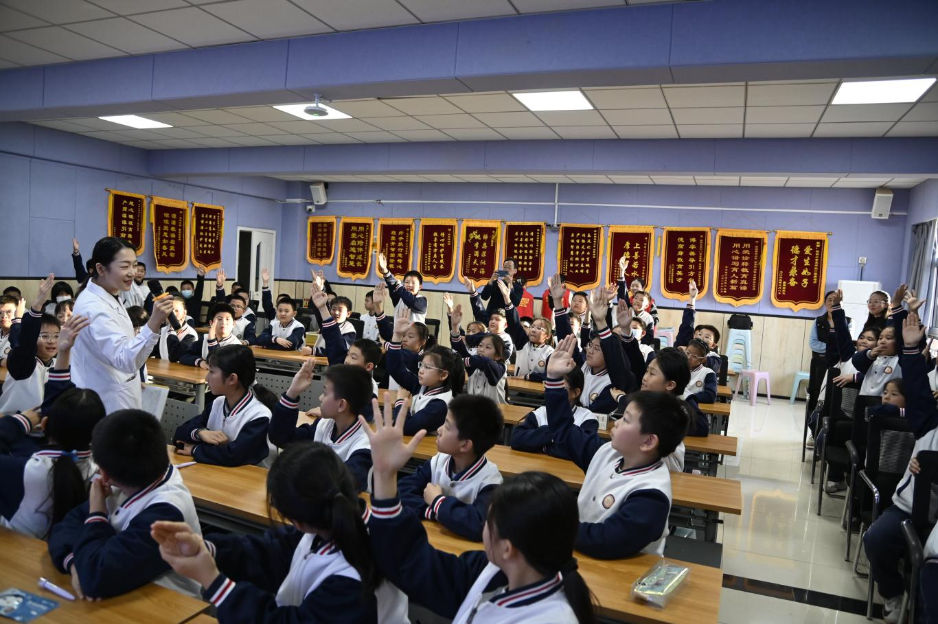 科普课堂环节,来自省药品医疗器械检验研究院的小马老师以“酒精算不算药品?”“能不能用牛奶送服药物?”“发烧了该怎么选退烧药?”等一系列紧贴学生日常生活的热点问题开启课程,通过趣味问答与互动讲解的形式,将专业的药品分类标准、科学的用药方法等知识,转化为同学们听得懂、记得住的通俗表达。现场同学们积极举手、踊跃抢答,课堂气氛热烈,孩子们在轻松愉快的互动中,掌握了实用的药品安全常识。