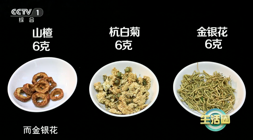 配方:干山楂6克、白菊花6克、金银花6克。