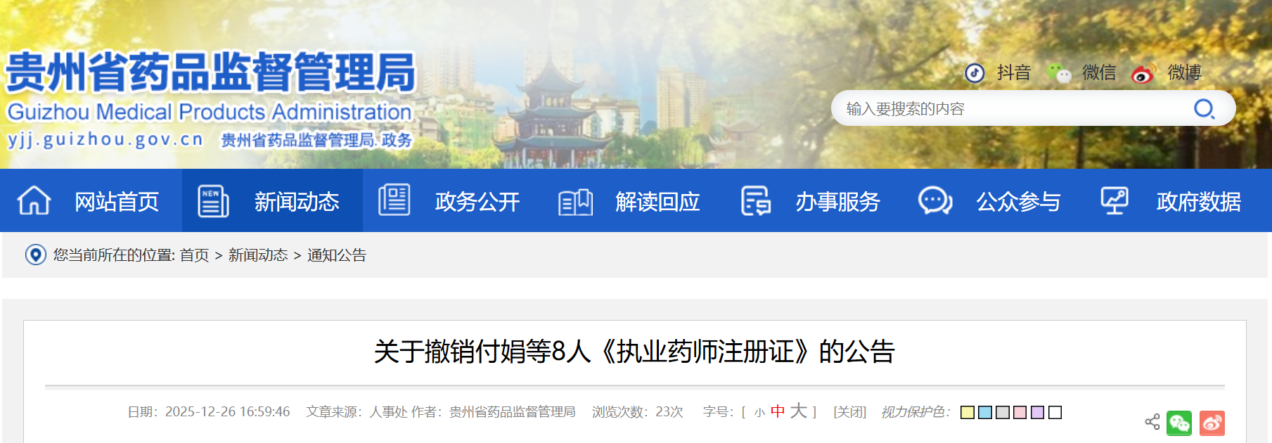 贵州省药品监督管理局发布公告