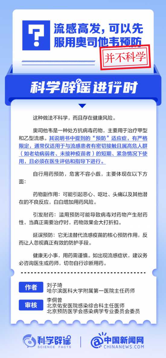 流感高发,可以先服用奥司他韦预防?